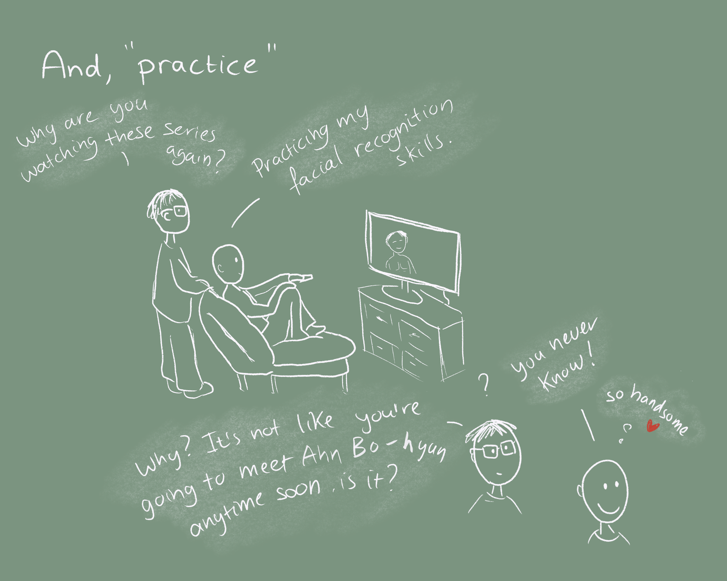 Prosopagnosia Or, face blindness. It’s different for everyone. I’ve made some sketches about what it’s like for me: